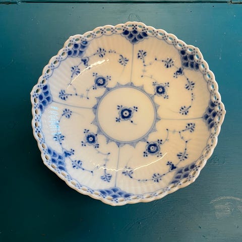 Antik MInton Danish musselmalet fad / kagefad med fod