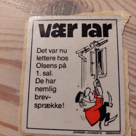 Reklameklistermærke fra 70'erne for at huske at sætte navn på postkassen.