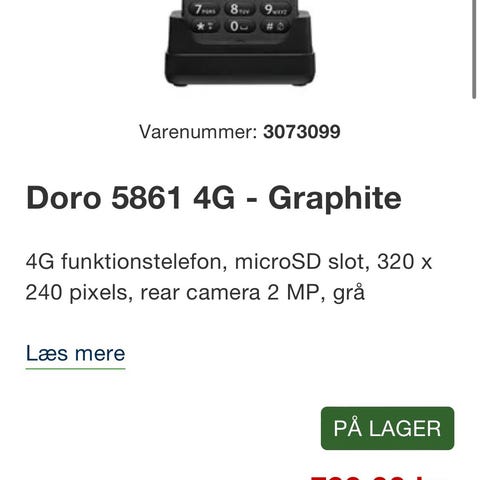 Synsvenlig med store taster. 3 mdr simkort medfølger