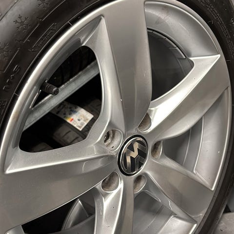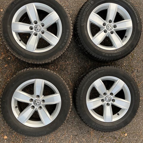 Super velholdte, originale Volkswagen “London”-fælge (17 tommer) med Michelin Alpin 5 vinterdæk med masser af mønster.