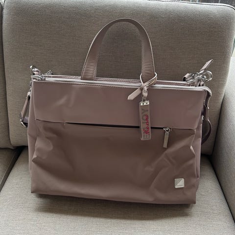 Så er det slut med skuldercomputertasken fra Jan Sport. Her har du mulighed for at møde ind på arbejde i bedste 80’er yuppiestil. Tasken er utroligt velholdt med den klassiske klik-lyd, når den ‘knappes op’. Utroligt fund!