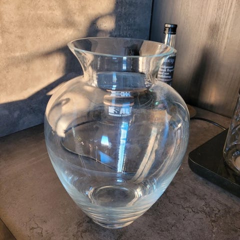Ilva glasvase i brunligt, transparent glas. Vasen har en rund, kugleformet facon med bred åbning foroven og en markeret bund. Egnet som dekoration alene eller til blomster og grene på bord, reol eller vindueskarm.