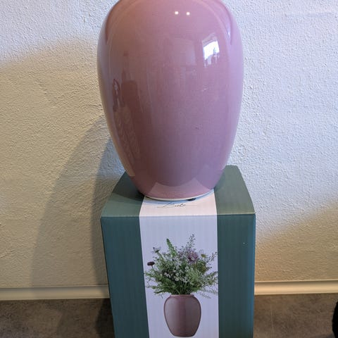Bitz vase i sort farve. Vasen har en rund, let aflang form med bred åbning foroven. Overfladen fremstår med små, diskrete prikker i glasuren. Egnet til dekoration, fx med blomster eller som enkeltstående pyntegenstand i hjemmet.
