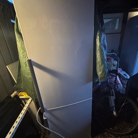 Køl/fryseskab Blomberg Hvid lavenergi med glas hylder i køleskabet og 3 skuffer i fryseren højde 152cm bredde 54cm dybde 57cm pæn og velholdt