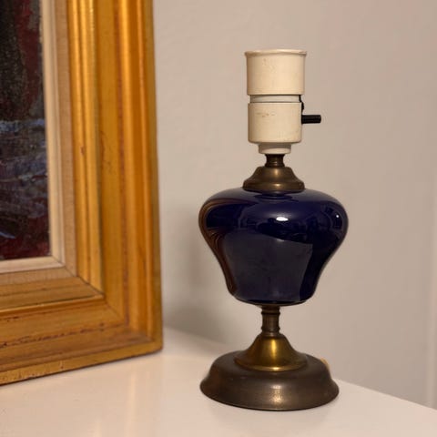 Tilstand: pæn og i fungerende stand. Smuk original lampeskærm med små sprækker!