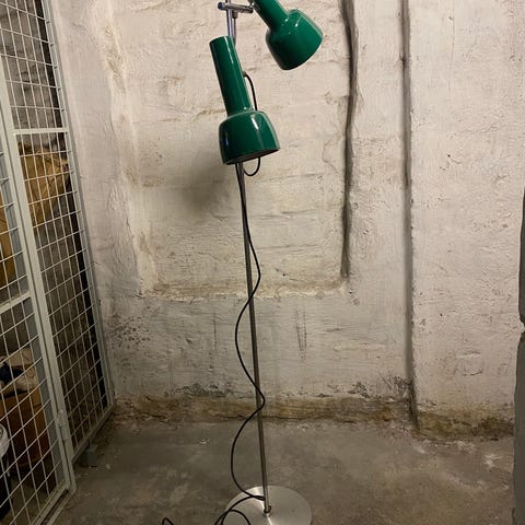 Polsklavet stålarverjusterbar orange gulvlampe, når den er udtrukket op til 180 cm i højden med en basediameter på 34 cm og en skærmdiameter på 39 cm, i god brugt stand med mindre tegn på ældning. Klik på den blå "gå til varen" knap, for at købe eller byde på denne vare. Den samlede pris vil blive vist inden du afgiver dit bud.