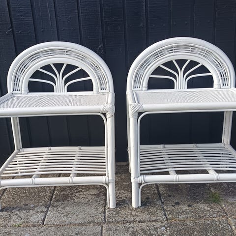 Højbord i bambus med rundt røgfrit glasplade, model fra 1970’erne i vimini og røgglas, Italien; i god stand med normale aldersrelaterede brugsspor, mål Ø83 cm og H41,5 cm. Klik på den blå "gå til varen" knap, for at købe eller byde på denne vare. Den samlede pris vil blive vist inden du afgiver dit bud.