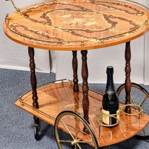 Rullebord - Træ - Håndlavet drikkevarevogn i sorrentino stil, fuldstændig ind...