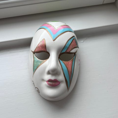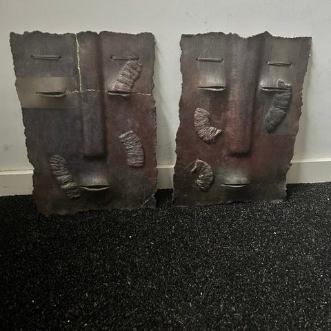 Fremstillet i Italien i 1960’erne (se forskellige signaturer inde i maskerne). Til brug som vægdekoration i en klassisk eller landlig indretning.