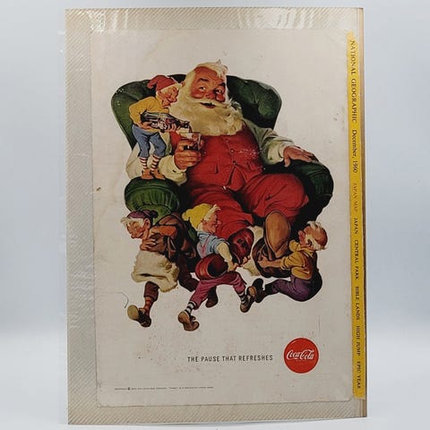 Originale Kellogg’s Corn Flakes-reklamekalender, et ægte vintage reklamegrafikobjekt, forbundet med de ikoniske amerikanske reklamekampagner for mærket Kellogg’s.