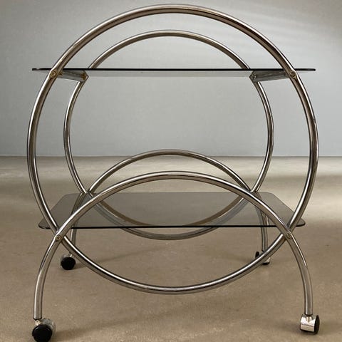 Dette elegante bord er udstyret med to praktiske buede hylder, hvoraf den ene er en hærdet, slebet glashylde.