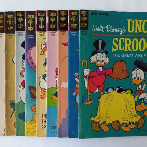 Uncle Scrooge #3 fra Four Color-serien, første udgave hos Dell Comics, med hæftet binding (stapled), tegnet af Carl Barks, i Very Good-stand, 1951–1952, nummer 495. Klik på den blå "gå til varen" knap, for at købe eller byde på denne vare. Den samlede pris vil blive vist inden du afgiver dit bud.