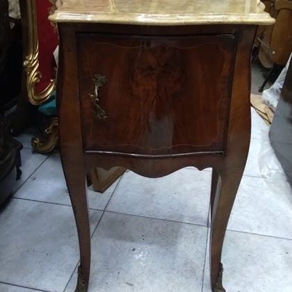 Bordpladen, udført i Breccia marmer, fanger opmærksomheden med sine smukke farveskift.