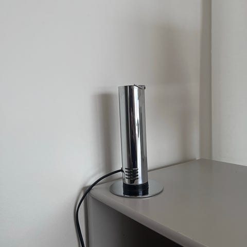 Bordlampe i forgyldt bronze med stofskærm, i god stand med små tegn på alder; fremstillet i Italien i 1960’erne; højde 66 cm, diameter 30 cm, én fatning, i funktion. Klik på den blå "gå til varen" knap, for at købe eller byde på denne vare. Den samlede pris vil blive vist inden du afgiver dit bud.
