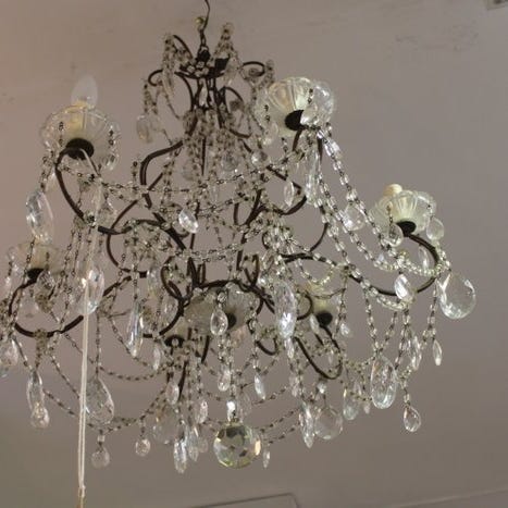 Pragtfuld lysekronen i Empire-stil af krystal, raffineret og scenografisk, ideel til at pryde saloner, indgange, spiseværelser eller repræsentative miljøer.