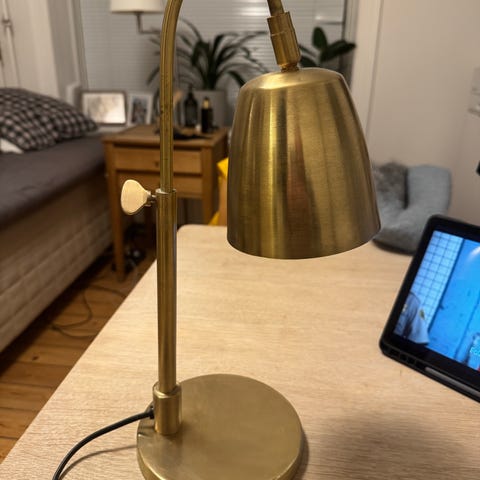 Justerbar i højden, og lampeskærmen er også justerbar.
