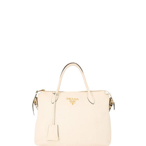 I Saffiano læder med guldhardware.