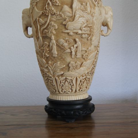 Meget smukt vase i serpentin og låg, fint udskåret - det 20. århundrede.