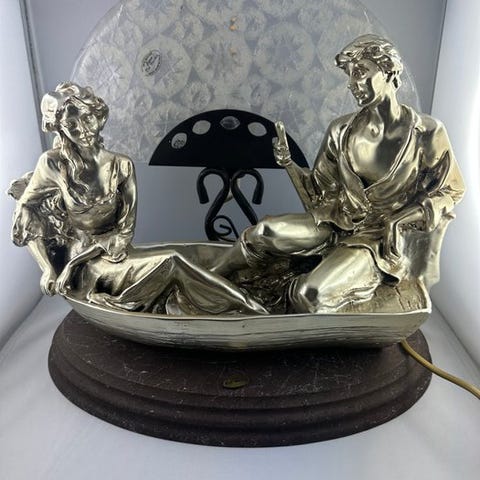 Ronzan håndmalet glaseret porcelæns sculpture af to eksotiske fugle på et grene, lavet i Italien (Turin) i midten af det 20. århundrede (ca. 1950), dimensioner 21×23×26 cm, vægt 1,153 kg, modelnr. 437, i god tilstand med mindre skader. Klik på den blå "gå til varen" knap, for at købe eller byde på denne vare. Den samlede pris vil blive vist inden du afgiver dit bud.