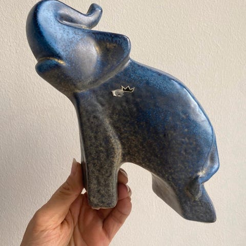 Keramik-elefantstatue med titlen Elefante Africano, fremstillet i Italien i det overall set XX århundrede, afbildende elefanten i bevægelse med en forben løftet og en let buet snude, signeret og i fremragende stand, målene 44 cm bred, 30 cm høj, 19 cm dyb, ikke sendt til Tyskland. Klik på den blå "gå til varen" knap, for at købe eller byde på denne vare. Den samlede pris vil blive vist inden du afgiver dit bud.