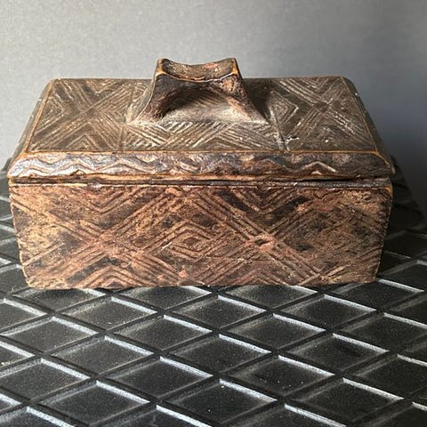 De trækopper fra Kuba-folket, som er hjemmehørende i Centralafrika (nutidens Den Demokratiske Republik Congo), er meget mere end blot praktiske beholdere: de udtrykker en dyb kulturel, kunstnerisk og symbolsk betydning. Håndskårne af dygtige håndværkere, kopperne er normalt fremstillet af robuste lokale træsorter og kendetegnes ved deres elegante former og afbalancerede proportioner.