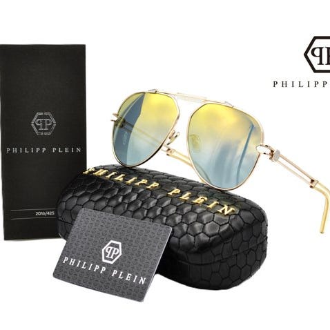 Philipp Plein - SPP171M - Made in Italy - Exclusive Gold Aviator Design & Gre...