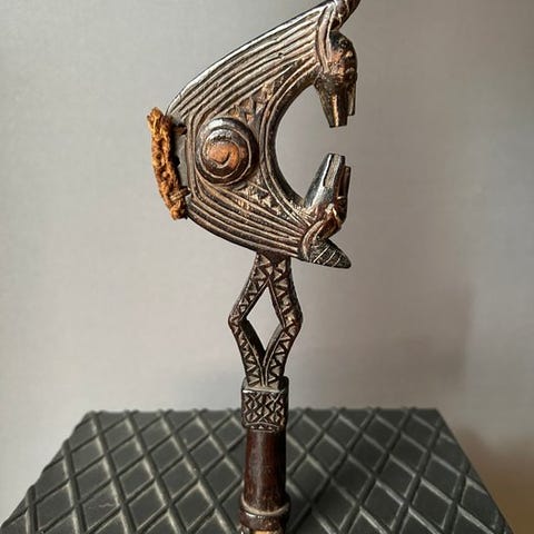 Antik Baoulé "Blo blo" med dyb patina forårsaget af afvaskning og oliegnidning. Højde: 36 cm.