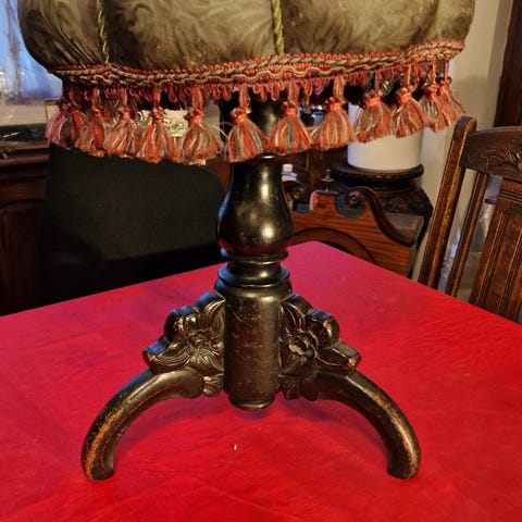 Pianostol i drejet træ, hvilende på 4 fødder.