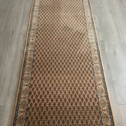 Et gammelt bokhara-mønster bordløber, tæppe eller gobelin fremstillet på en ungarsk væv fra omkring 1950'erne i persisk stil.