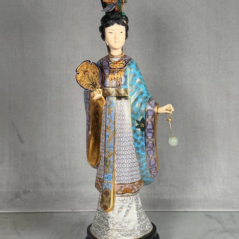 Bronze cloisonné æske med gyldent finish, Qing-dynastiet Jiaqing-periode, med titel Boite en Bronze Cloisonne Dore, diameter 8,1 cm, i god stand. Klik på den blå "gå til varen" knap, for at købe eller byde på denne vare. Den samlede pris vil blive vist inden du afgiver dit bud.