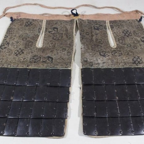 Rustning - Japan - Lårbeskyttelse (Haidate 佩楯) og et par armbeskyttere (Kote ...