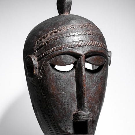 Langt fra en dekorativ søgen indfanger denne maske kongo-kunstens essens: symbolsk effektivitet, åndelig styrke og formel læsbarhed. Spor af alderdom forstærker dens