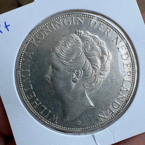 Hollandsk sølvmønter 2½ gulden fra 1922, katalog PL13.a1 / Pick 17, serienummer D, ikke certificeret, ét eksemplar, tema Historie, i pæn stand. Klik på den blå "gå til varen" knap, for at købe eller byde på denne vare. Den samlede pris vil blive vist inden du afgiver dit bud.