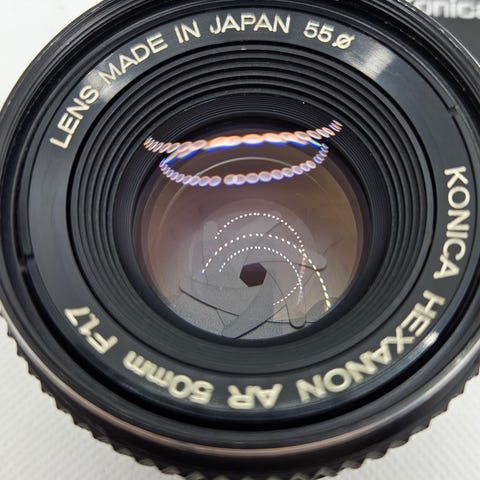 Konica Hexanon AR 57mm f/1.2 er et særdeles hurtigt manuelt fokuseret standardobjektiv, højt værdsat for sin ultralysåbne blænde og klassiske optiske gengivelse. Designet til Konica AR-fatningen er dette objektiv kendt for sin smukke baggrundssløring, stærke central skarphed og karakteristiske udtryk ved store åbninger. En ægte klassiker, der foretrækkes af samlere og fotografer, der søger et særligt hurtigt objektiv.
