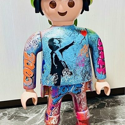 I dette værk skaber kunstneren en hyldest til fodboldspilleren ved at afbilde ham i det ikoniske Playmobil-legetøj i XXL-format (toy-art).
