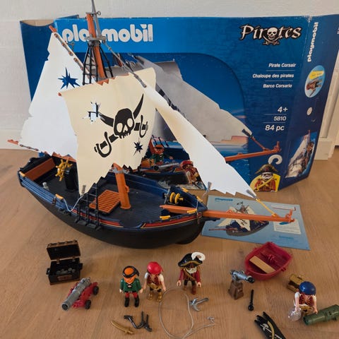 - Detaljeret Playmobil-piratsskib med sejl, kanoner og mange tilbehørsdele