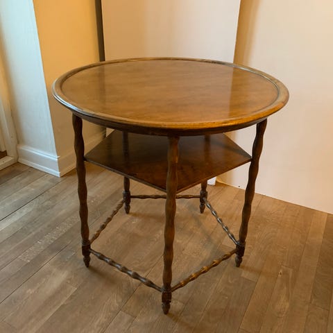 Lampebord - Valnød - Rundt kaffebord – shabby chic-finish