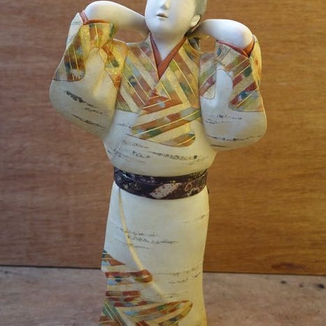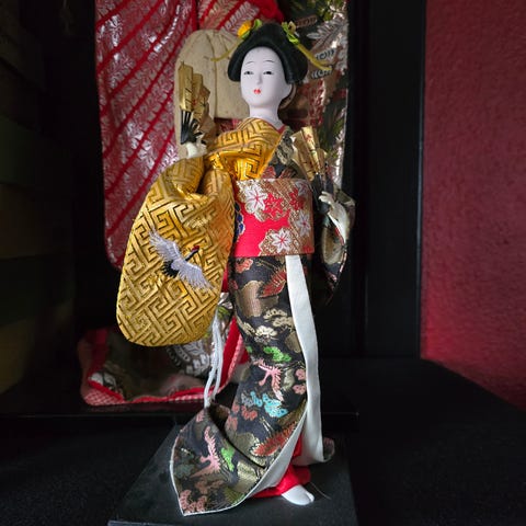 Bijin med brev – Traditionel japansk dekorativ dukke - Silke, brokade, træ, s...
