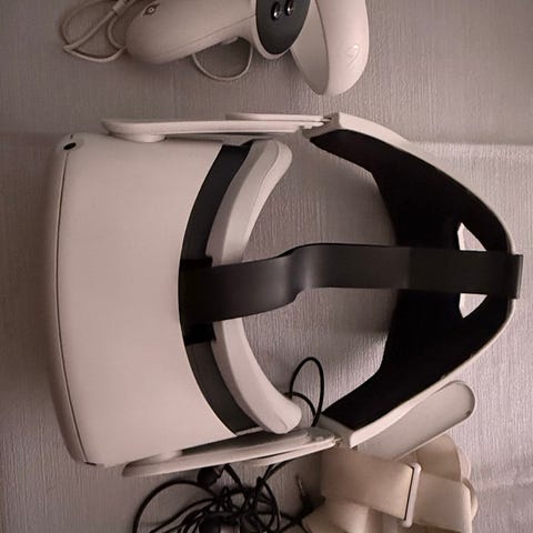 Meta Quest 2, fremstillet i 2020 af Meta (Oculus), i nær ny stand og i funktionsdygtig stand, med tilbehør vist på billederne og uden USB-C opladeren. Klik på den blå "gå til varen" knap, for at købe eller byde på denne vare. Den samlede pris vil blive vist inden du afgiver dit bud.