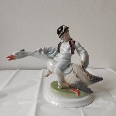 Herend Porcelæn: Ludash Magyi Lúdas Matyi Figur (1941) – Designet og underskrevet af Elek Lux