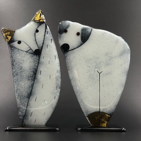 Et sæt opalglas Meadow Flowers håndlavet i en fusionsteknik af Maciej Habrat, en polsk kunstner, der har arbejdet med glas i over 20 år. Graveringen gør dem til enestående stykker, som helt sikkert vil fremhæve indretningen.