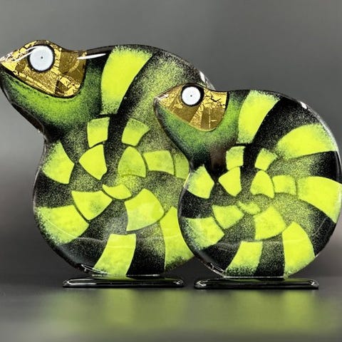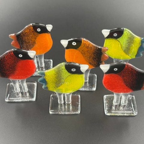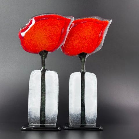 Tre Meadow Flowers i opalglas håndlavet i en fusings-teknik af den polske kunstner Maciej Habrat, med den store blomst måler 33 × 13 × 7 cm, den mellemstore 30 × 16 × 7 cm og den lille 20 × 9 × 6 cm, samlet vægt 900 g, pakket i æstetisk, miljøvenlig æske og med vedhæftet certifikat om ægthed; hver del er unik og signerede. Klik på den blå "gå til varen" knap, for at købe eller byde på denne vare. Den samlede pris vil blive vist inden du afgiver dit bud.