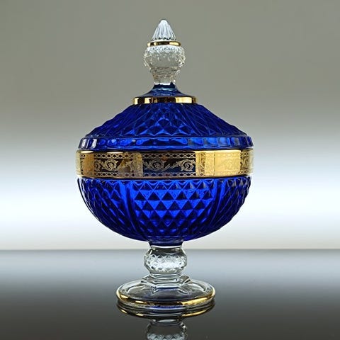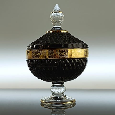 Håndlavet glasbon-boks med orange emalje og guldruer, tre gulde dekorationer, 24 kt flydende guld, mål 25x15x15 cm, vægt 1,25 kg, Italien, Secoloventesimo, næsten som ny. Klik på den blå "gå til varen" knap, for at købe eller byde på denne vare. Den samlede pris vil blive vist inden du afgiver dit bud.