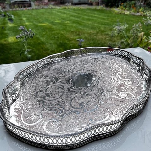 Antikt sølvbelagt kande med udsmykket engraving i klassisk form, 26 cm høj og 15 cm bred, fremstillet i Storbritannien, i fremragende stand med en let løs håndtag og blomster- og geometriske motiver gravure. Klik på den blå "gå til varen" knap, for at købe eller byde på denne vare. Den samlede pris vil blive vist inden du afgiver dit bud.