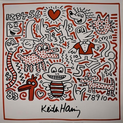 Signeret på pladen af Keith Haring.