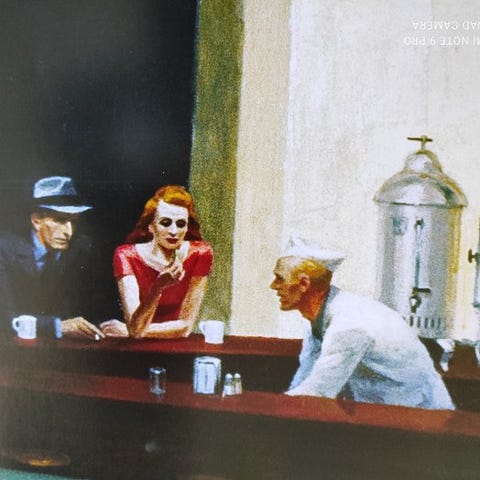 Edward Hopper - “Sunlight in a Cafeteria, 1958”. 40 x 30 cm.