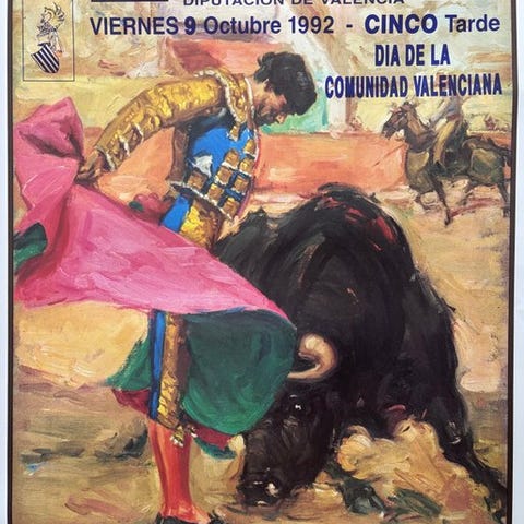 Originalt plakat for Spaniens internationale promovering (1989), som rummer et værk af Francisco García Abuja, en spansk maler kendt for sin delikate og følsomme spanske neofigurativisme fra midten af 1900-tallet, med en meget detaljeret og realistisk stil. Meget velbevaret. Privat samling. Sikker forsendelse i et rør af stift karton.