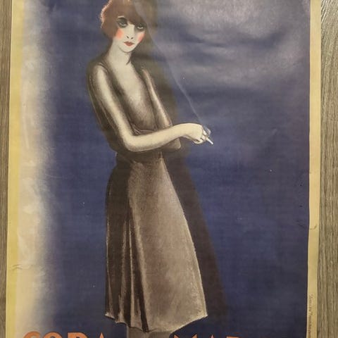 Elegant teaterplakat dedikeret til Pierre Meyer, udført efter Paul Colins grafiske design, en af de mest fremtrædende skikkelser inden for fransk plakatkunst mellem de to verdenskrige.