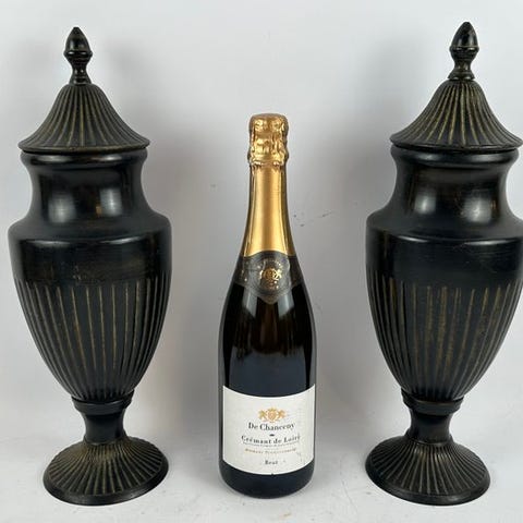Porcelænskaplet urne i italiensk vintage stil fra 1950’erne, med gennemborede låg og base, håndmalet blomsterdekorationer og en putto på låget, hvid glasur med omfattende guldfolie, 58 cm høj, 30 cm bred og 30 cm dyb, i god stand med små tegn på ældning. Klik på den blå "gå til varen" knap, for at købe eller byde på denne vare. Den samlede pris vil blive vist inden du afgiver dit bud.