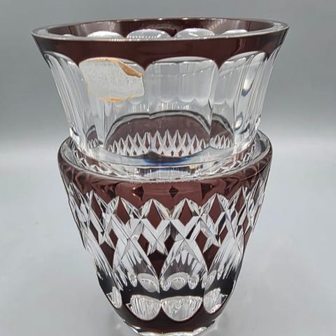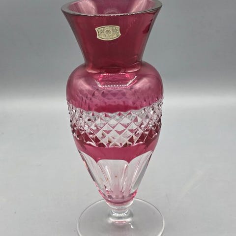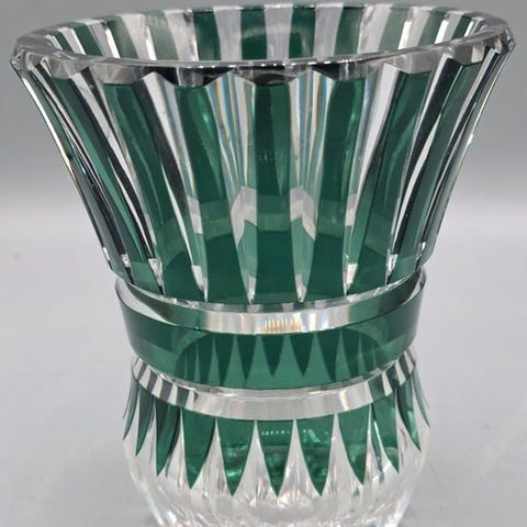 Val Saint Lambert krystalvas fra Belgien, cirka 1970–1980, mål 11 cm bred, 17 cm høj, 11 cm dyb, i god stand med let brugsslid og pletter på grund af alder. Klik på den blå "gå til varen" knap, for at købe eller byde på denne vare. Den samlede pris vil blive vist inden du afgiver dit bud.